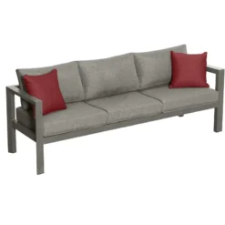 Sa haute résistance finira de vous convaincre : le canapé dispose d’une structure en aluminium traité époxy antirouille et de coussins d’assise en polyester 230 g/m² déhoussables et traités contre la décoloration.