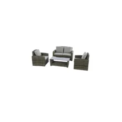 La structure est en aluminium traité époxy antirouille. Les coussins polyester 275 g/m² sont déhoussables pour un entretien facile et traités déperlants permettant à l’eau de glisser sans pénétrer dans la matière.